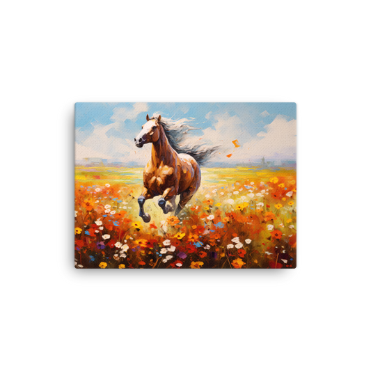 Dünne Leinwand "Impasto-Druck Braunes Pferd auf Wiese"